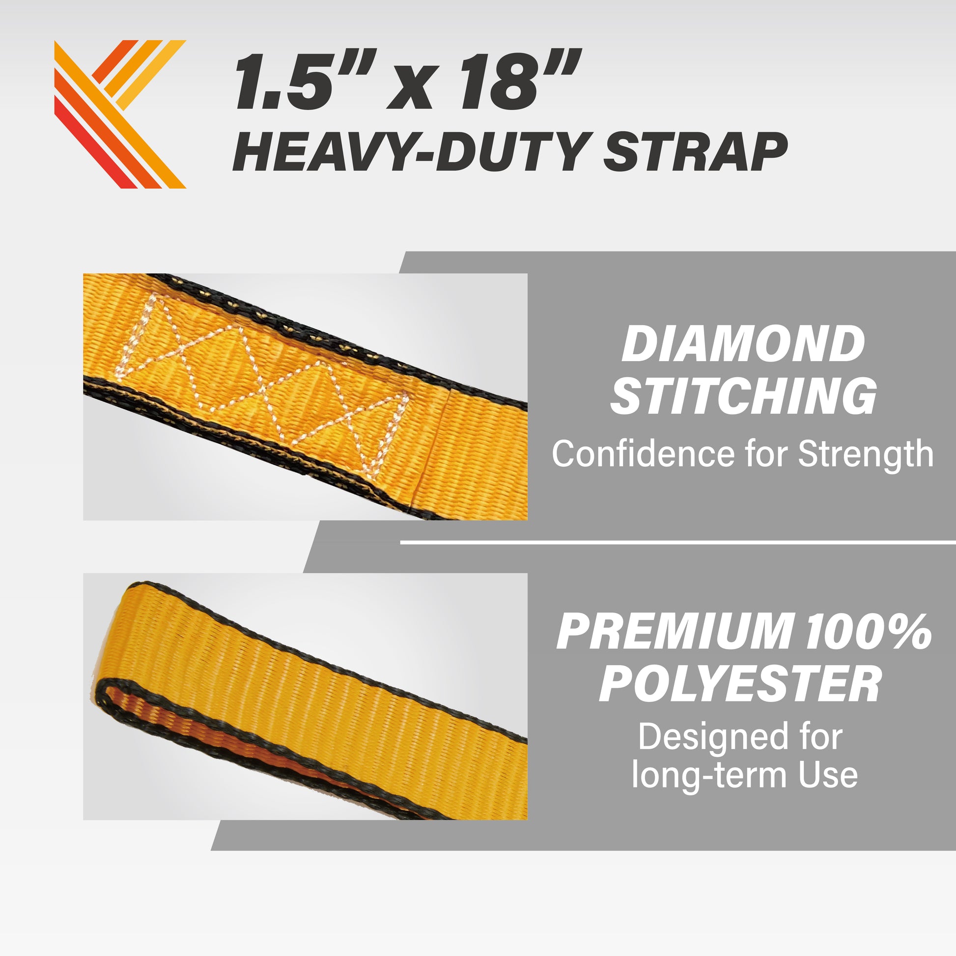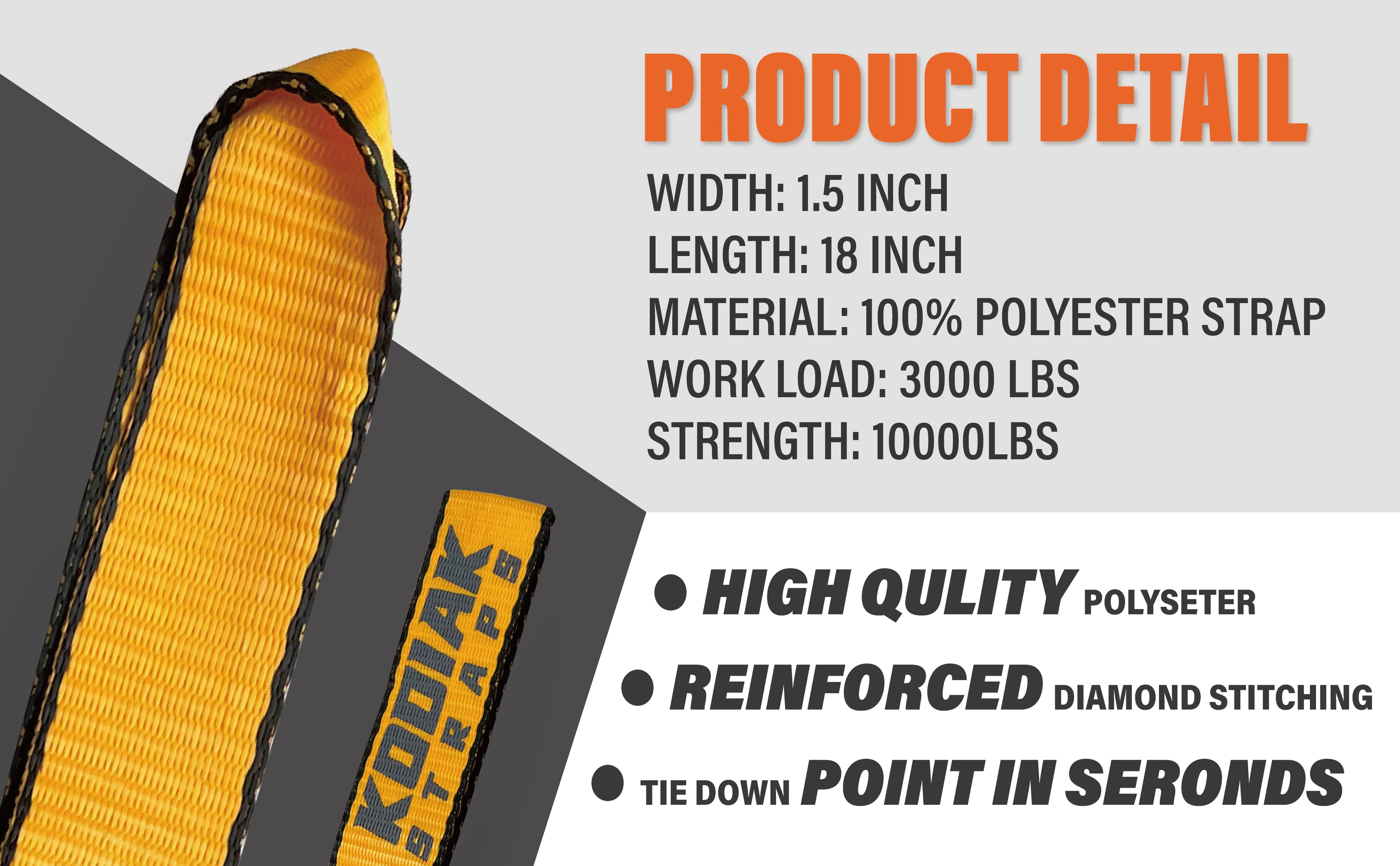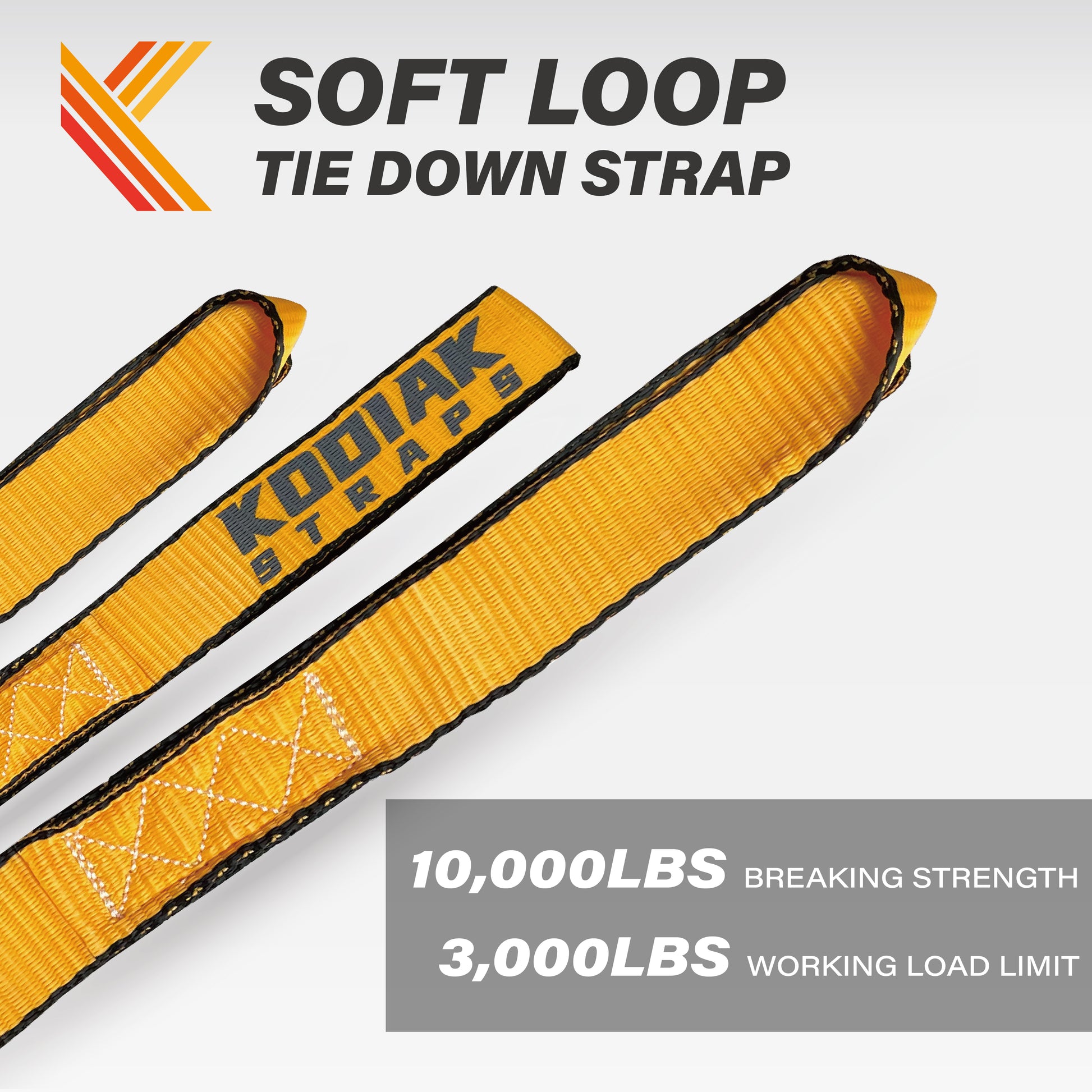 - PREMIUM QUALITY — Our heavy duty soft loop tie down straps have an extrodinary 1,500lbs capacity with a 10,000lbs minimum break strength. It granted the impressive long-lasting performance in any condition!