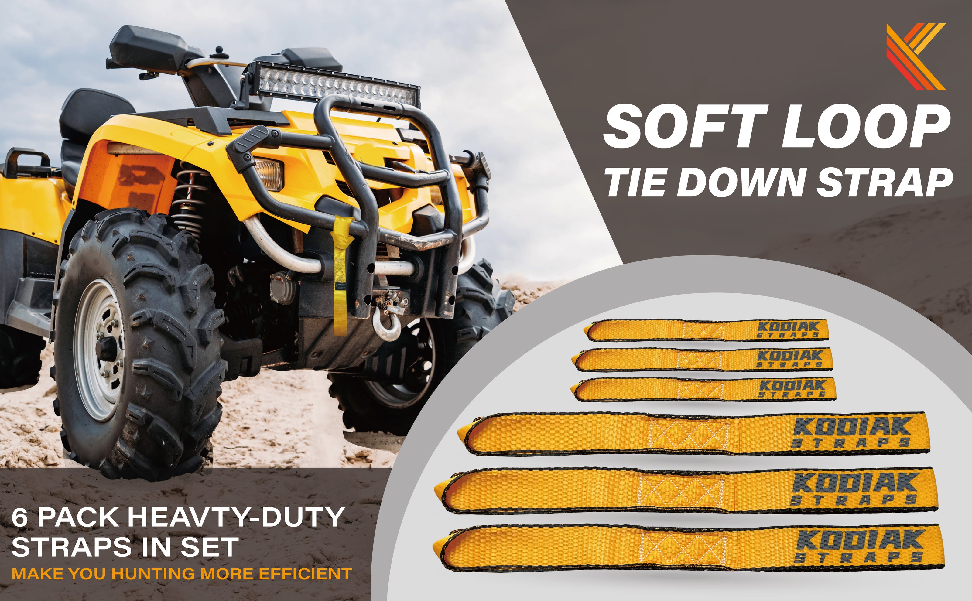 - MULTIPLE USES — Our tie down soft loop strap is absolutely capable to secure ATV, UTV, motorcycles, scooters, dirt bikes, wheelchairs, lawn/garden equipment & work with any type of tie down you are using!