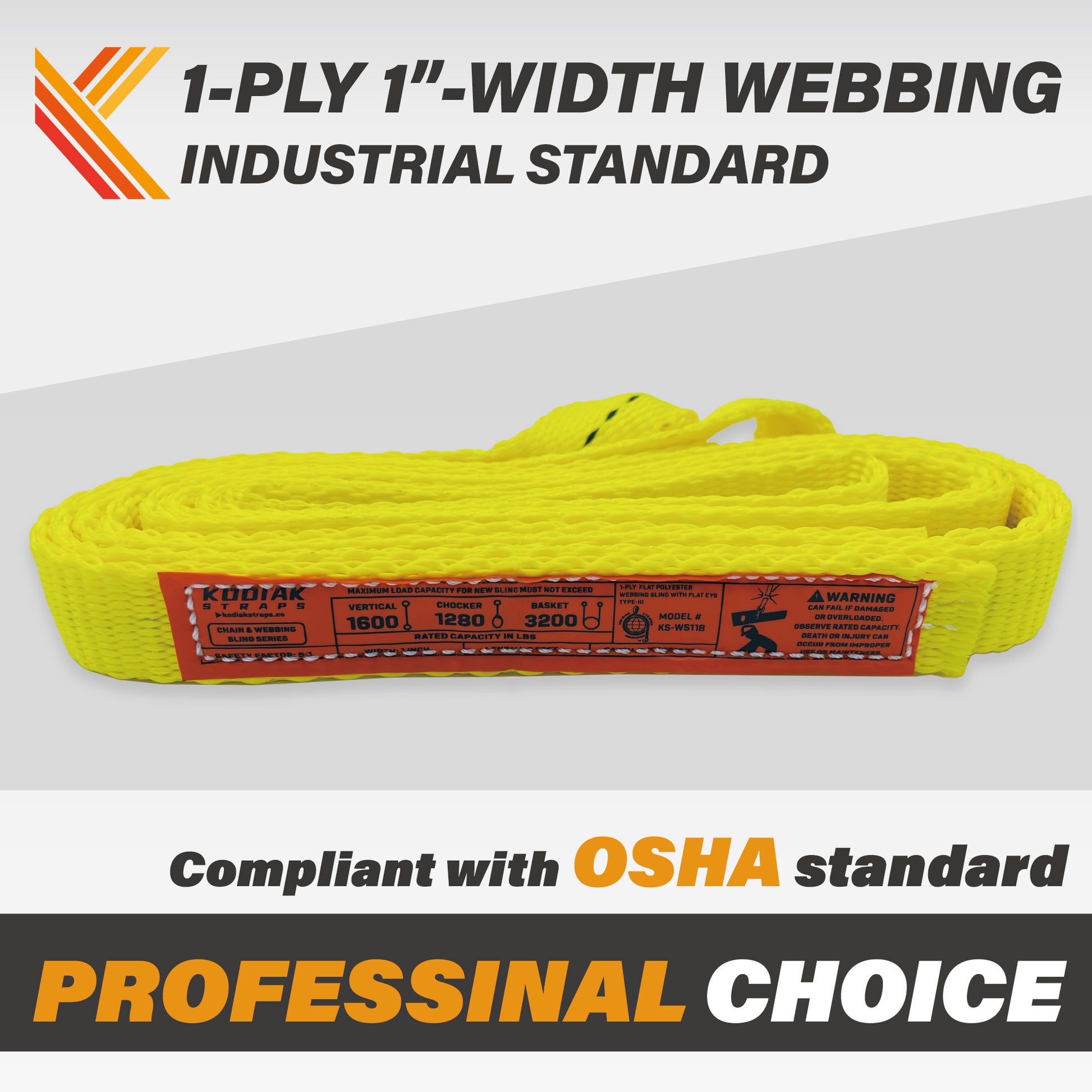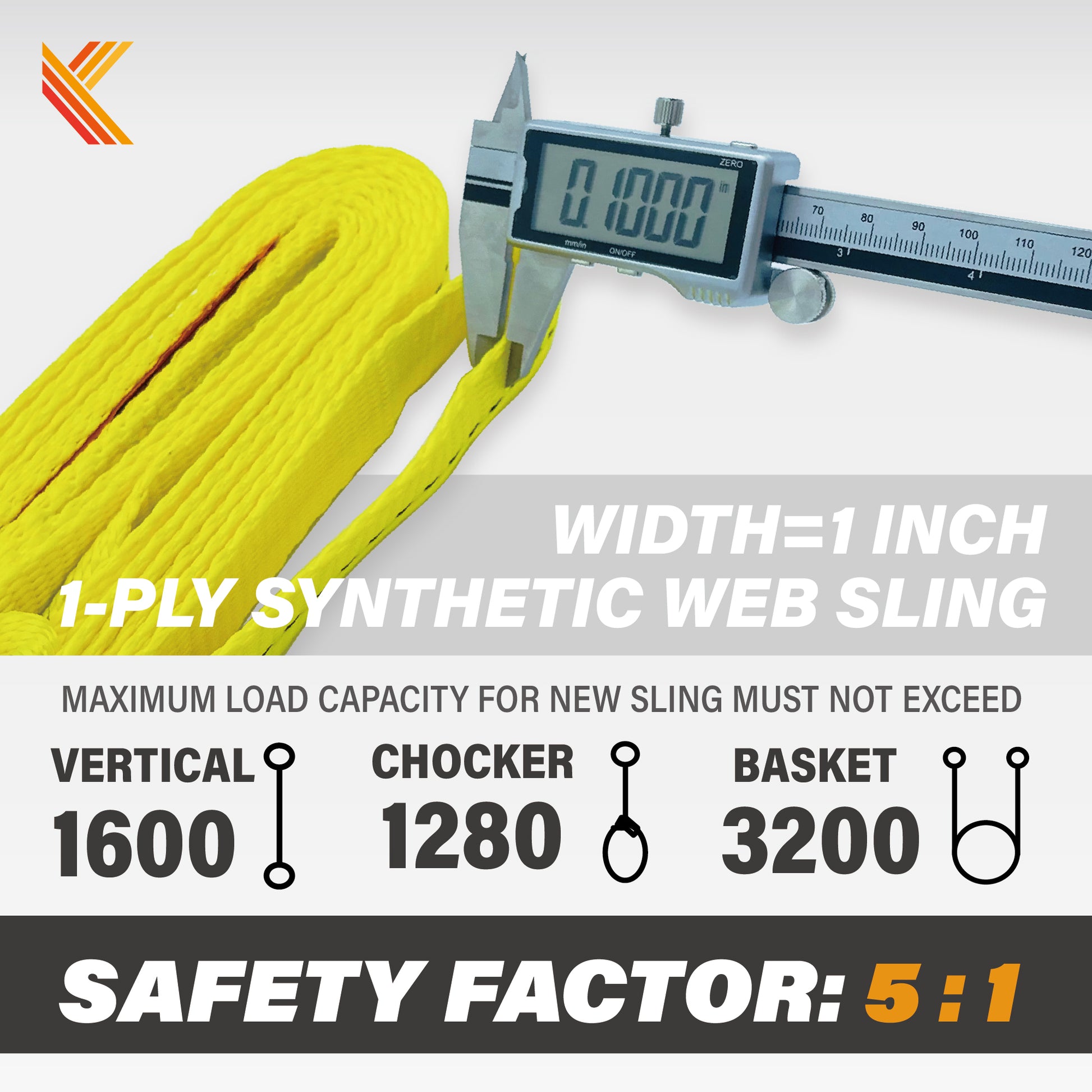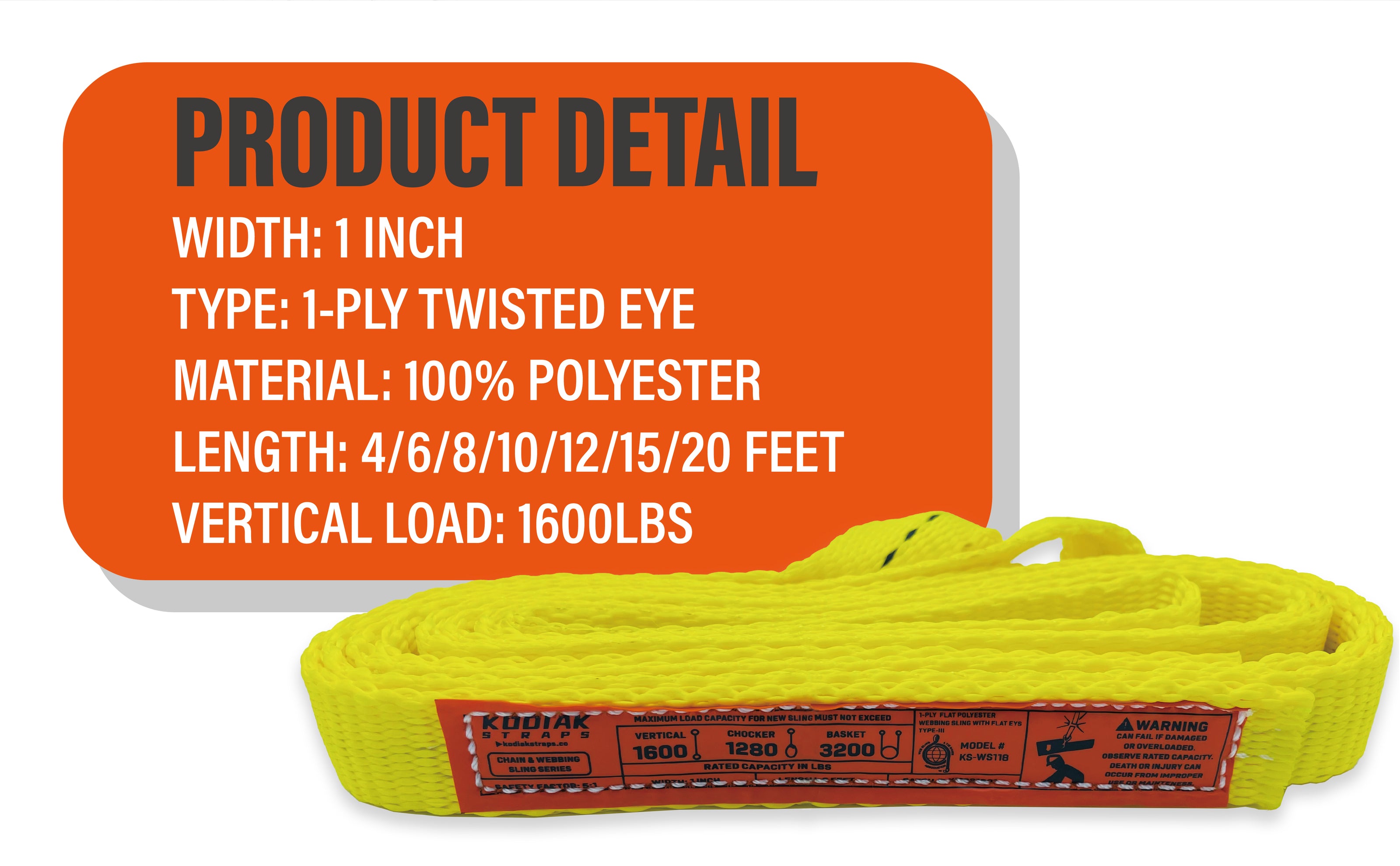 - 1-PLY AND HEAVY DUTY WORK LOAD — Vertical load 1600lbs; Choker hitch 1280lbs; Basket hitch 3200lbs.