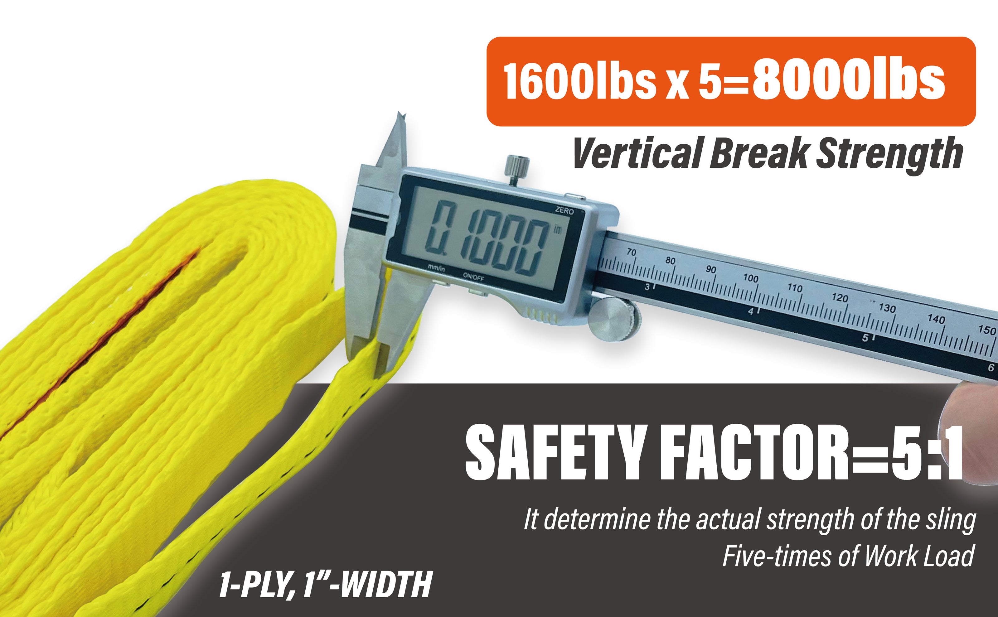 - WSTDA STANDARD 5:1 SAFETY FACTOR — Break strength=5 x Work load limit. It provides massive safety margin to make sure reliability and security in high-risk scenarios.
