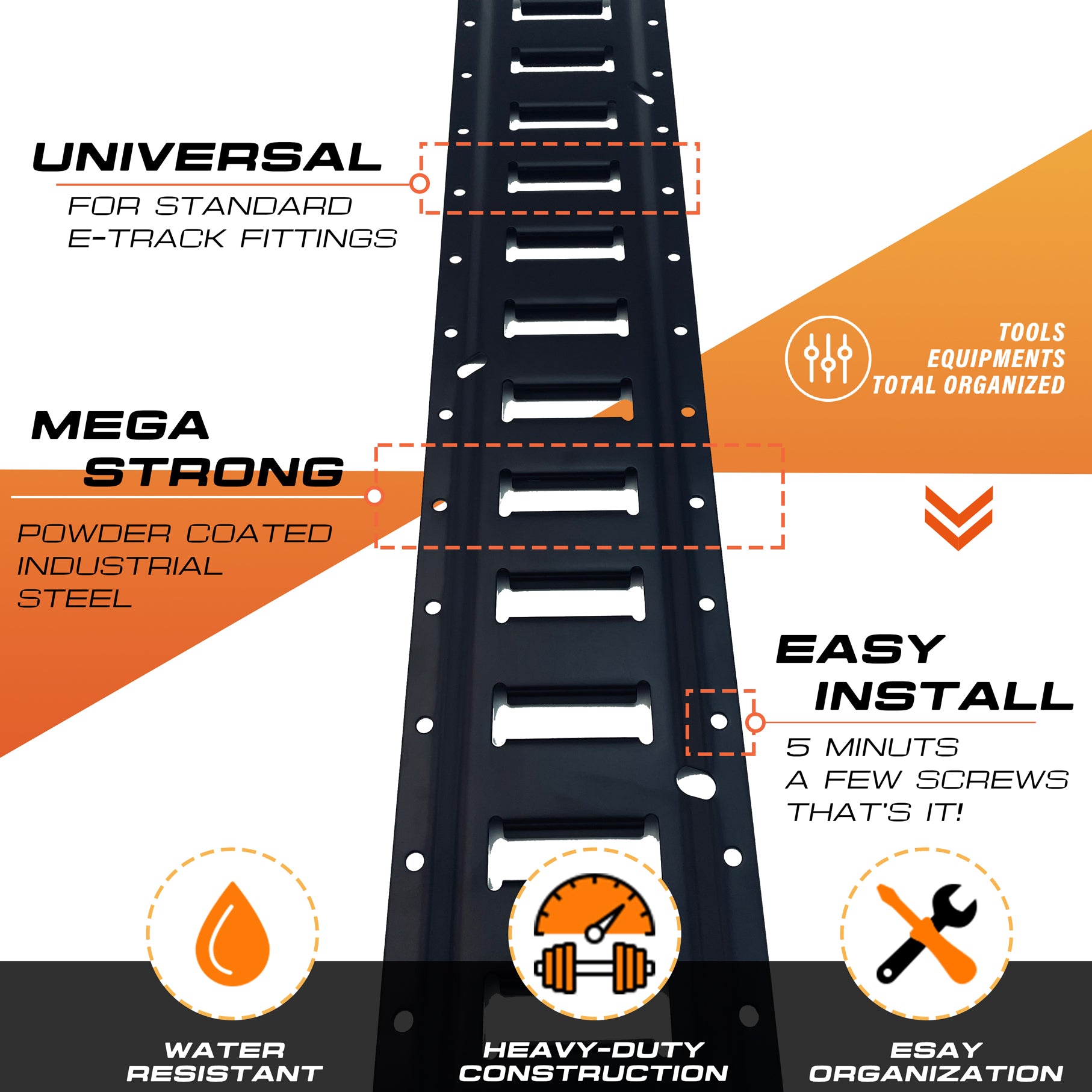 UNIVERSAL TO USE — Just a few screws will securely anchor your E track tiedown rail system to a wall, floor, or piece of metal, fast and easily. Whether you’re looking to SET UP your box truck or ORGANIZE a warehouse, the E-track system is quickly becoming the most POPULAR tie-down set up for smart truckers everywhere.