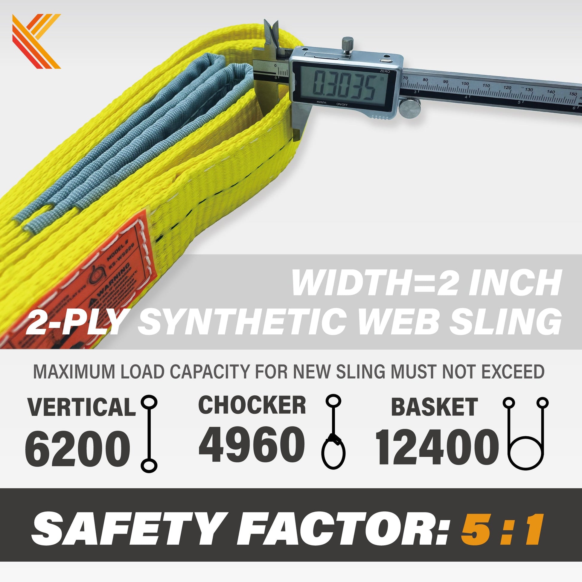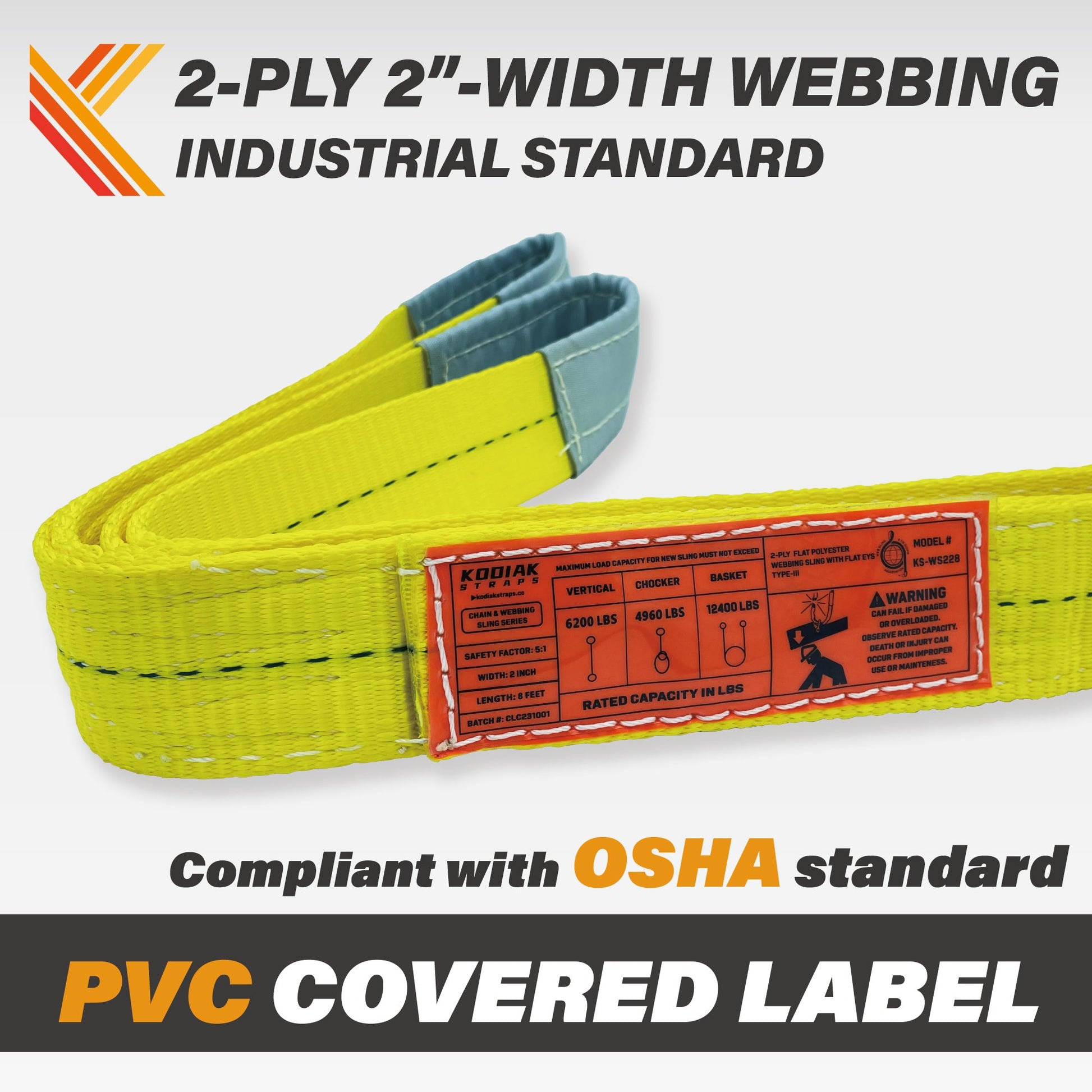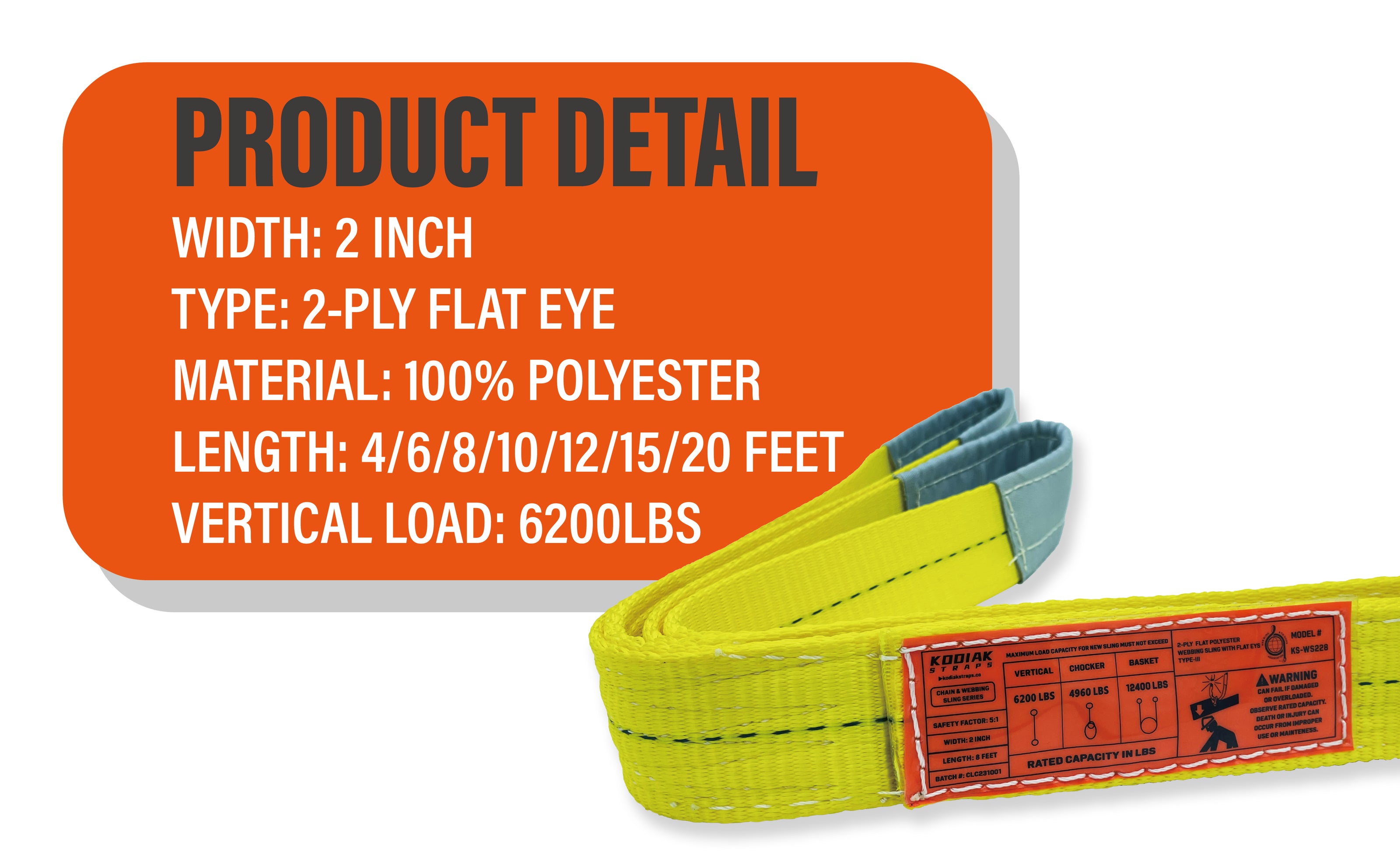 - 2-PLY AND HEAVY DUTY WORK LOAD — Vertical load 3100lbs; Choker hitch 2400lbs; Basket hitch 6200lbs.
