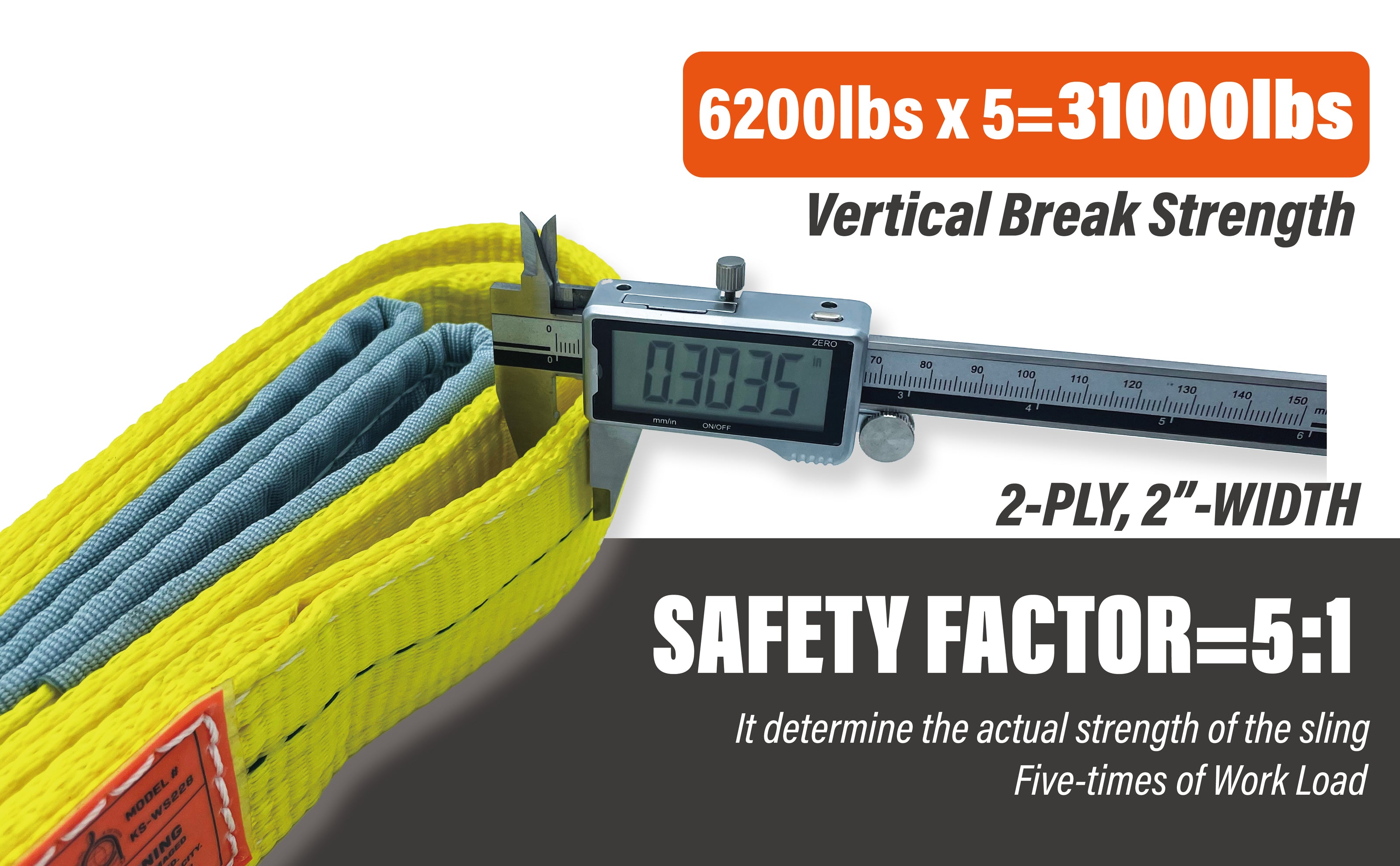 - WSTDA STANDARD 5:1 SAFETY FACTOR — Break strength=5 x Work load limit. It provides massive safety margin to make sure reliability and security in high-risk scenarios.
