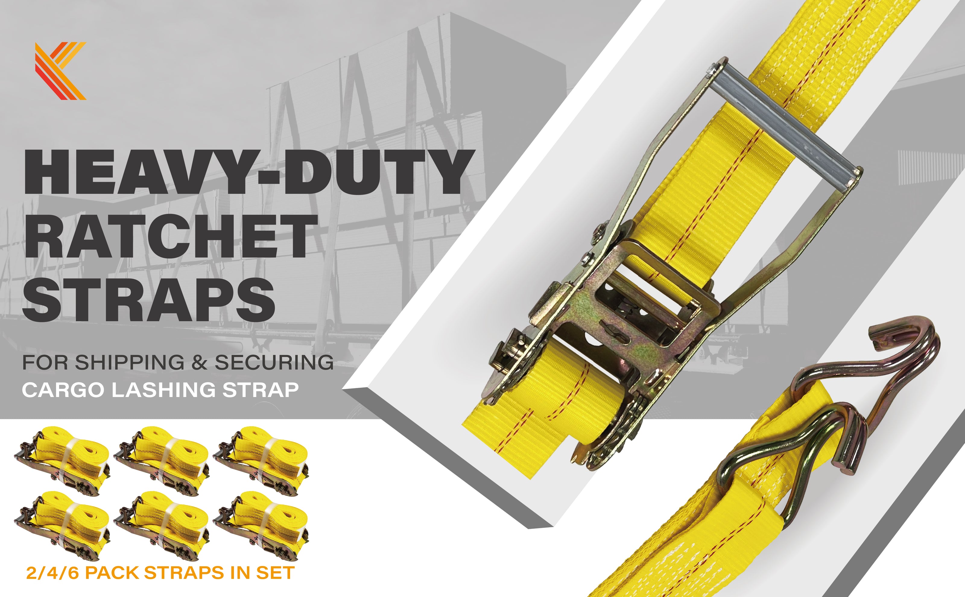 2" x 15' Ratchet Straps with J Hooks