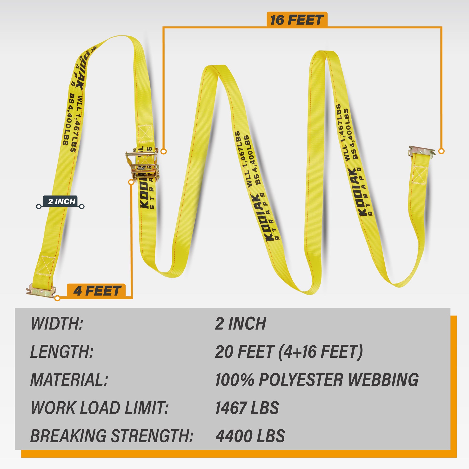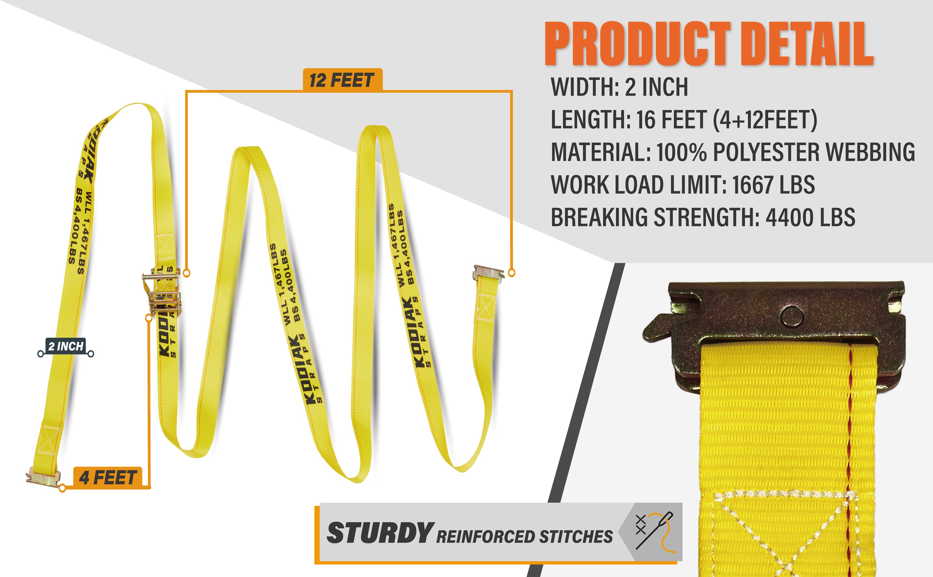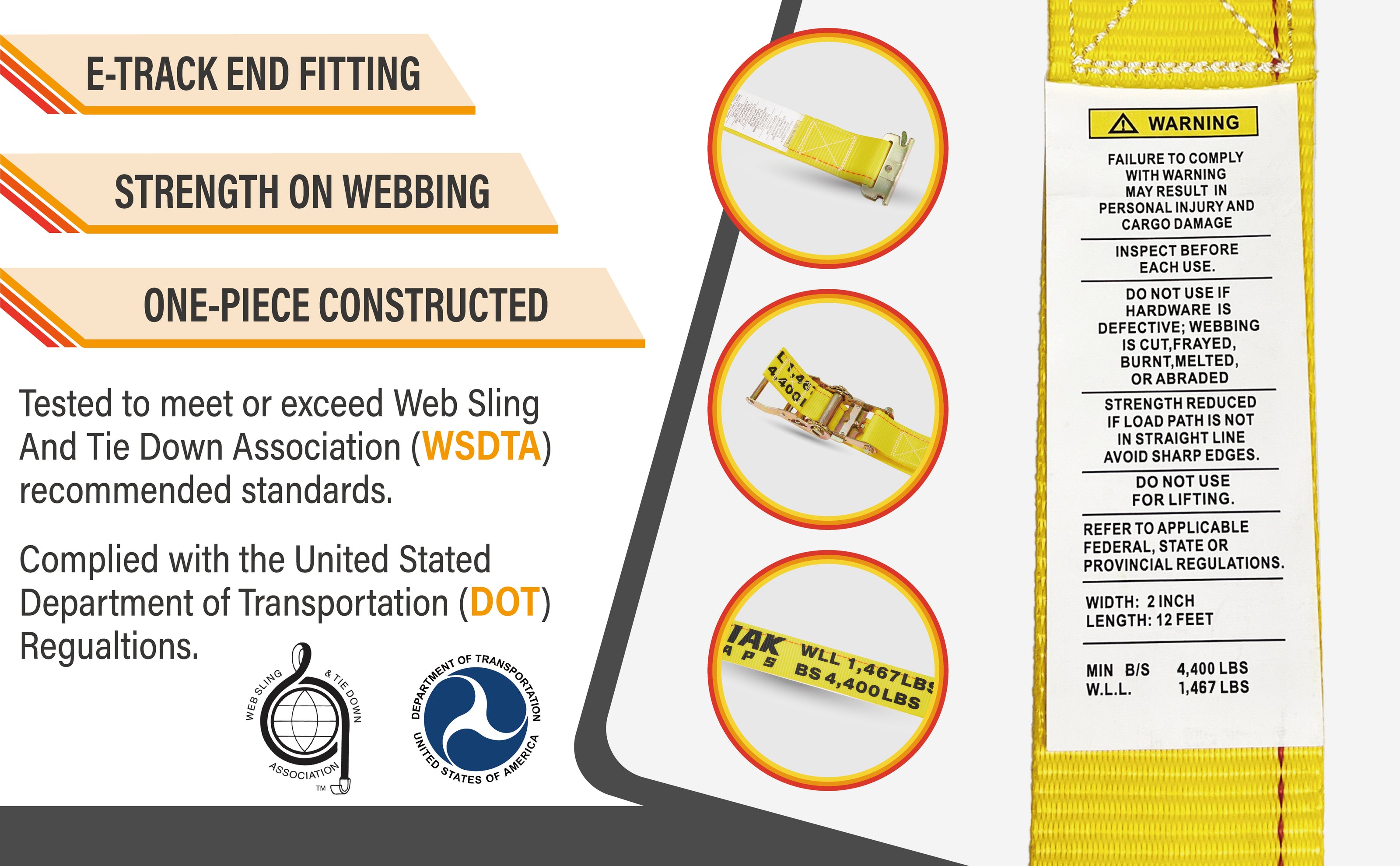 - MADE FOR LONG TERM USE — These Straps for e track tiedown rail are made out of durable polyester. The Stiff yellow webbing is water and UV ray resistant; they won’t shrink or stretch even when wet. This e track accessories for enclosed trailer are made to ensure the most reliable securement throughout the bumpiest rides.