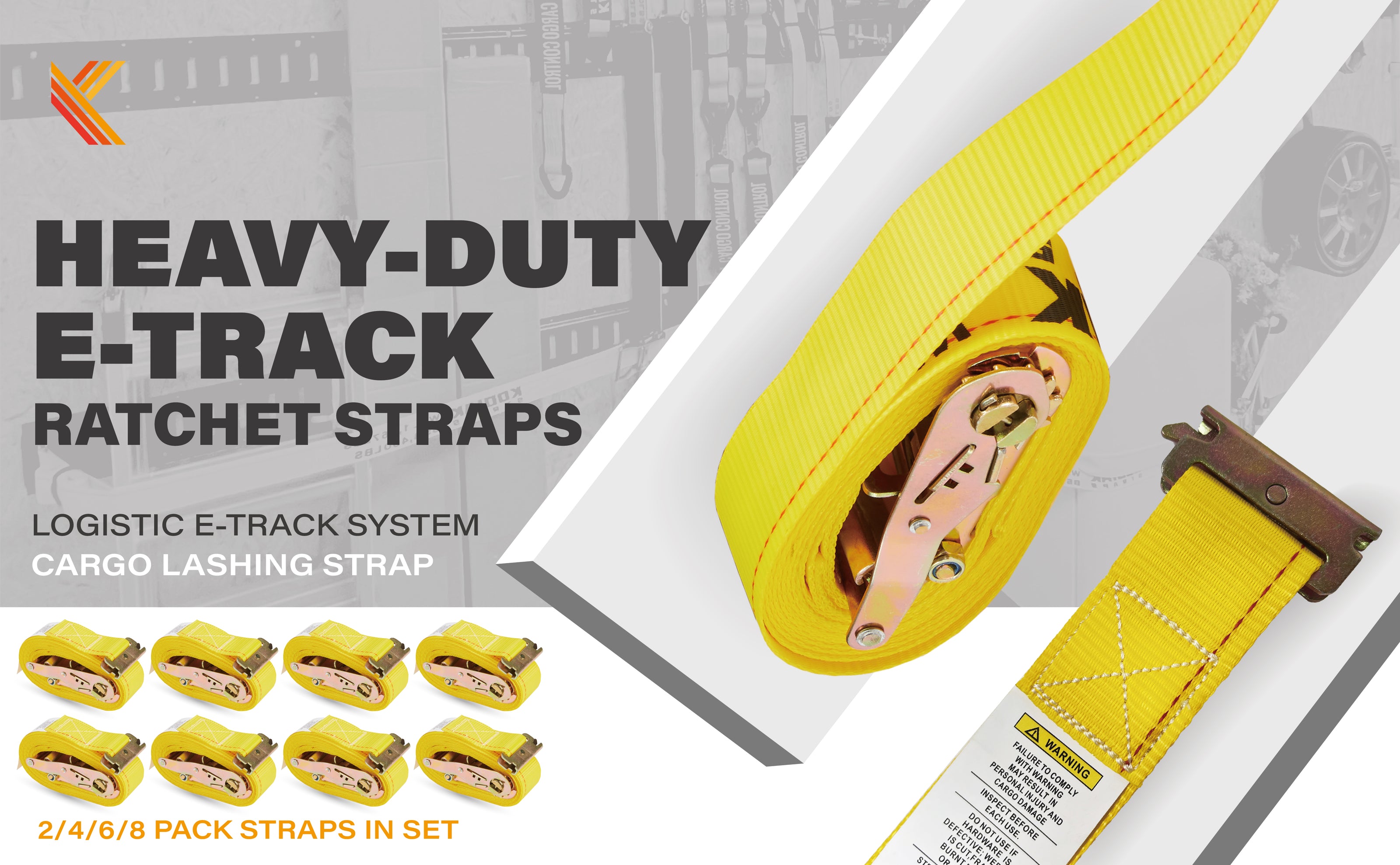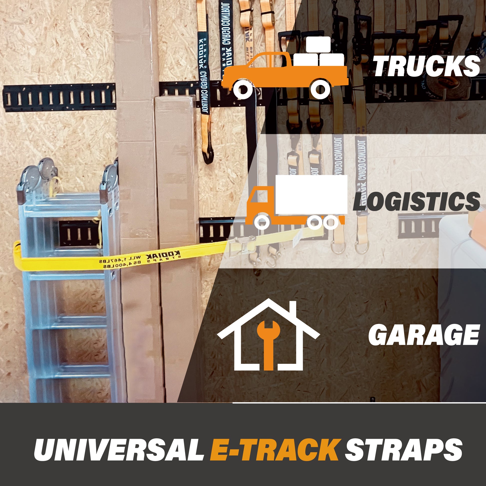 - PRO E TRACK STRAP — These Heavy Duty e track strap can easily Secure Cargo Loads with any e track assecories In Your Box Truck, Cargo Van, Pickup Bed, Flatbed/Utility Trailer, Enclosed Trailer, or Warehouse With The Convenient And Versatile e-track accessories System.