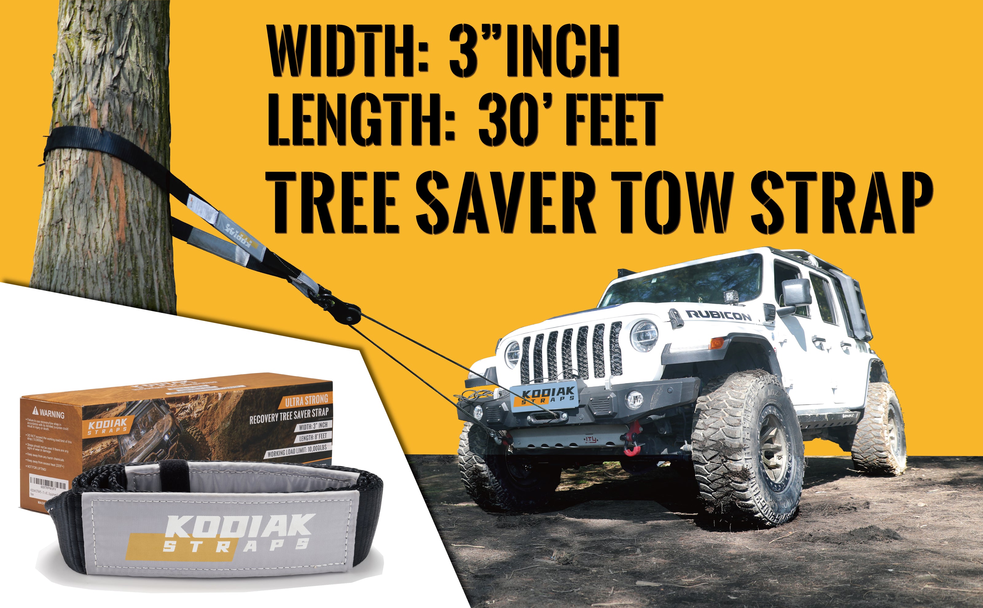 - HEAVY DUTY TOW STRAP — Pull yourself out of trouble with this high strength vehicle or car towing strap. Measuring 3” x 20' feet, tow rope is ideal for towing cars, large straps for trucks, SUVs, pulling heavy equipment, boats and more. A must have product for farmers, off roaders or anybody looking to move heavy objects.