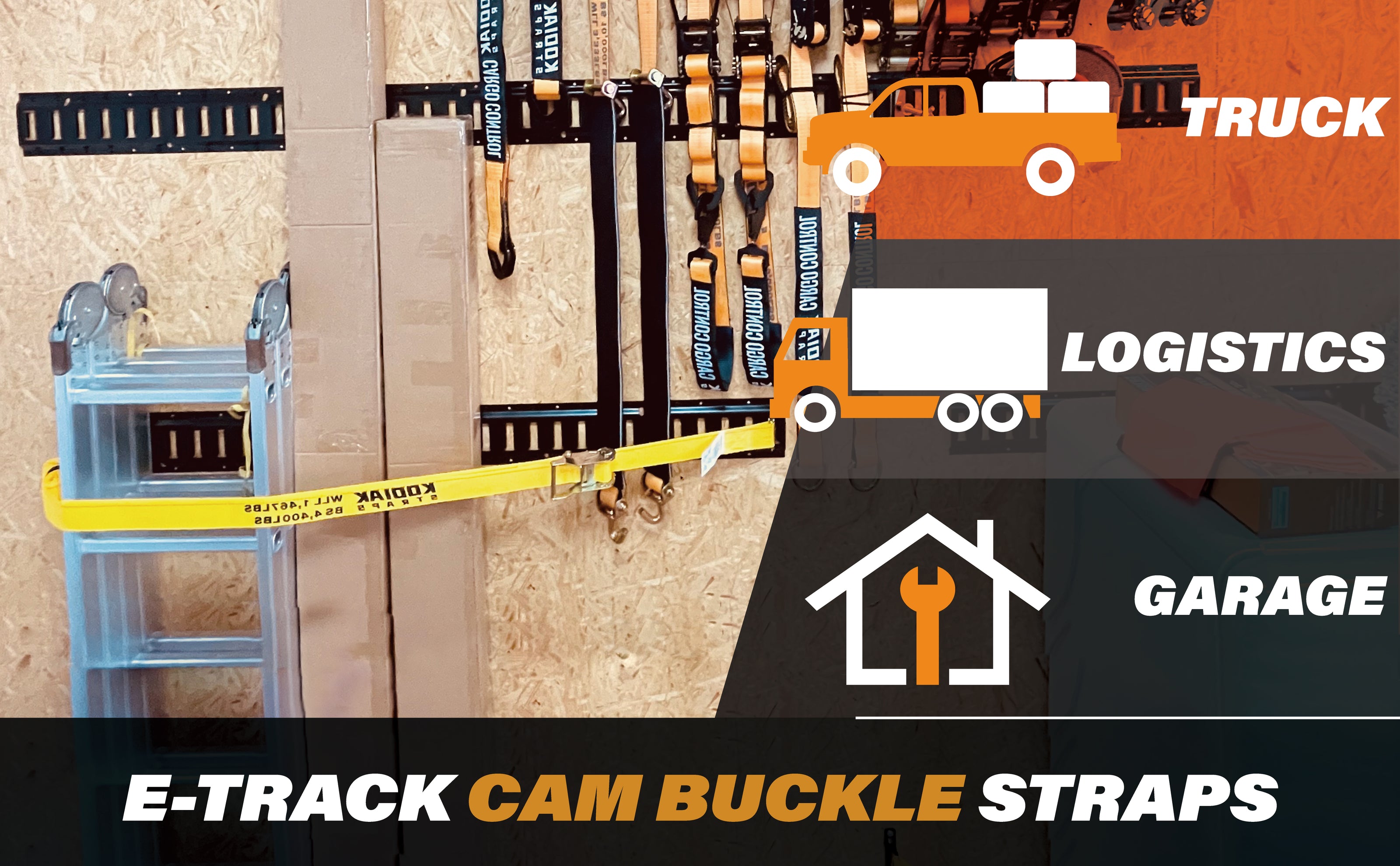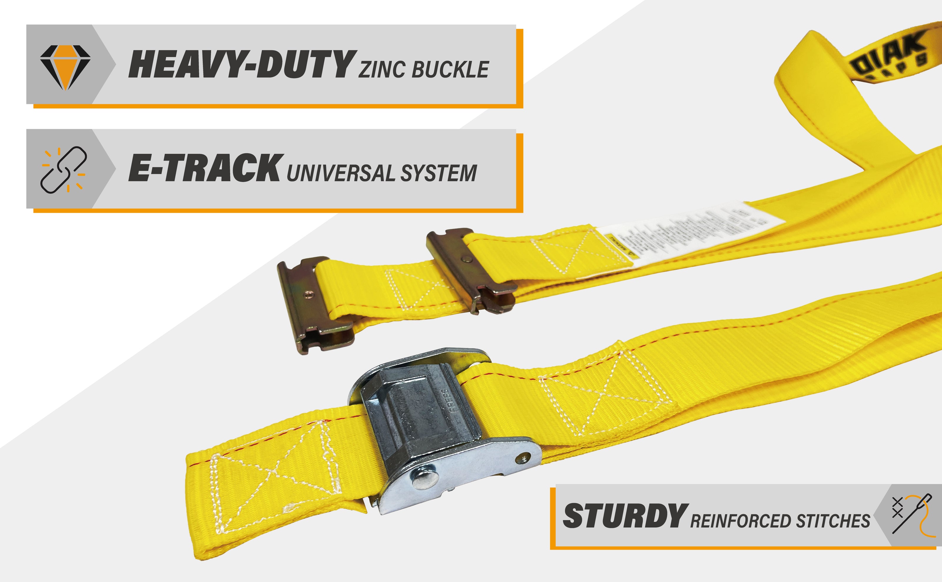 - PRO E TRACK STRAP — These Heavy Duty e track strap can easily Secure Cargo Loads with any e track assecories In Your Box Truck, Dry Van, Pickup Bed, Flatbed Trailer, Enclosed Trailer, or Warehouse.